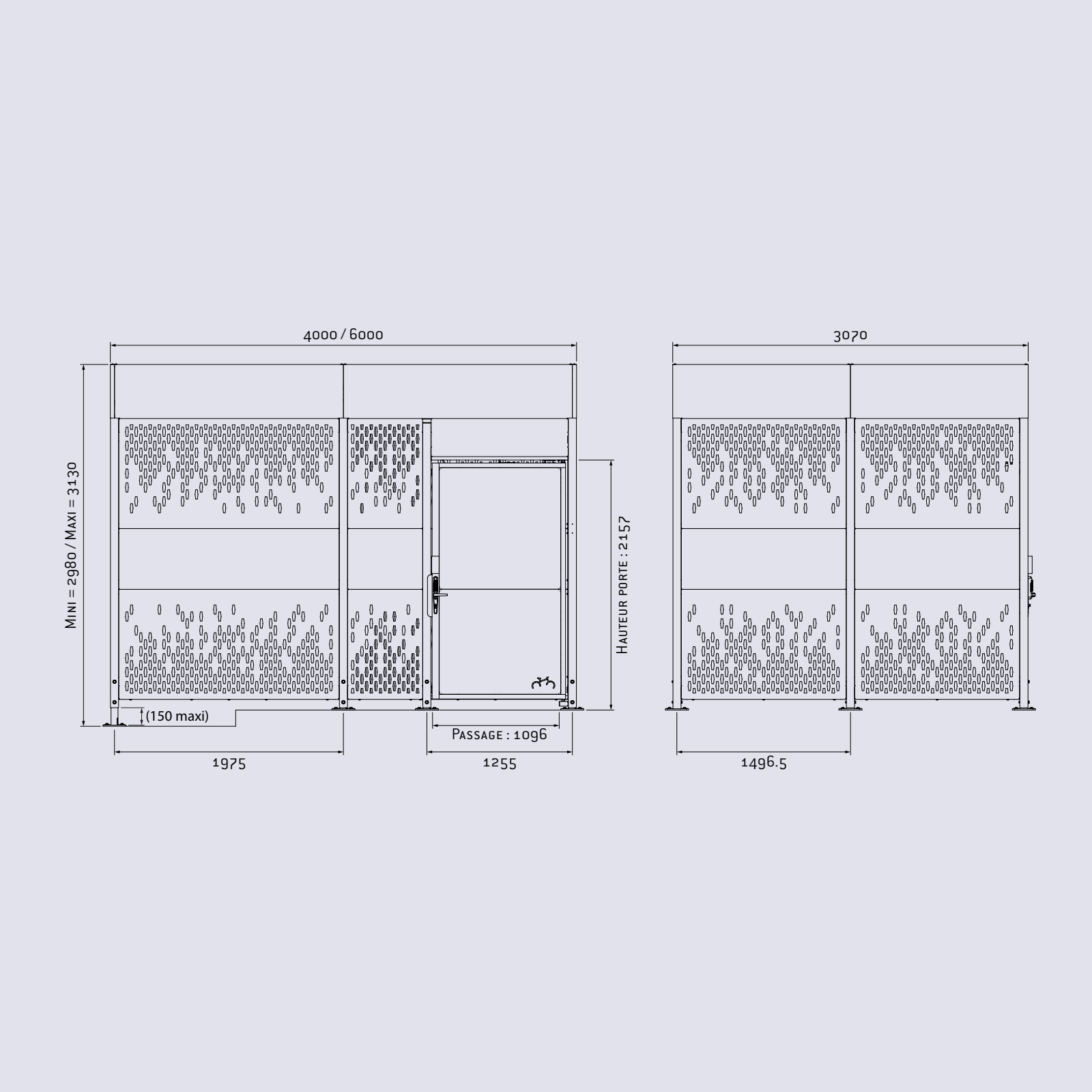 - Velikost: 4000 (šířka) x 3070 (hloubka) x 2980 (výška) mm