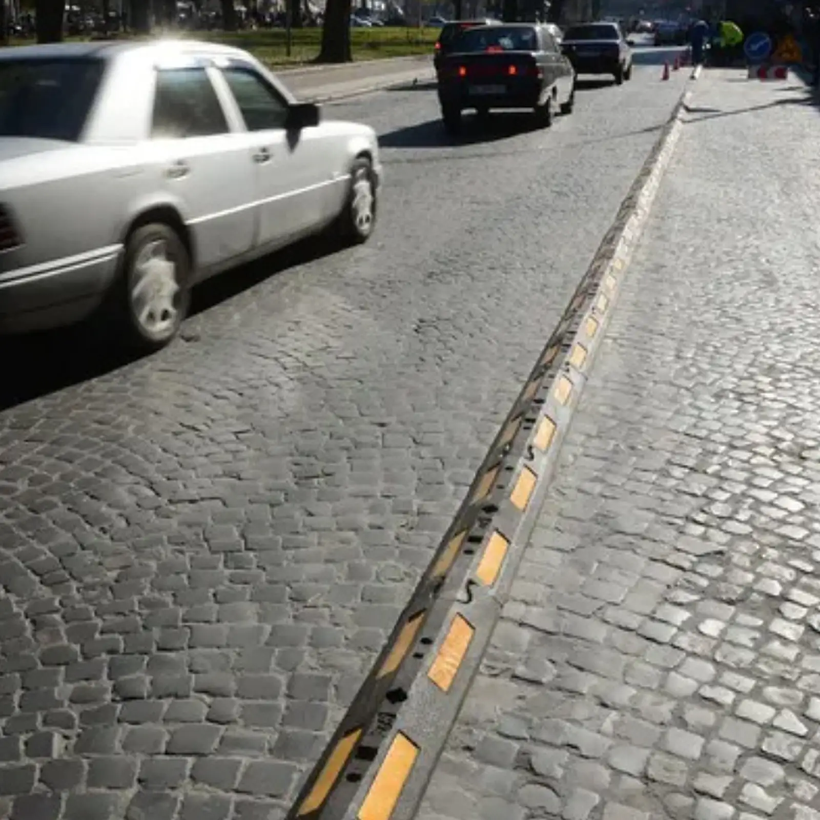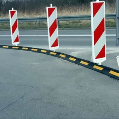 Modulární oddělovač jízdních pruhů z černého kaučuku reflexními pruhy