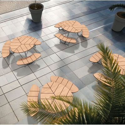 Lavice a stůl s kovou konstrukcí a lamelami z kompaktu