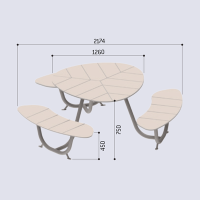 Konstrukce z trubek s lakem na zinek, deska stolu a lavice z kompaktu s tloušťkou 18 mm