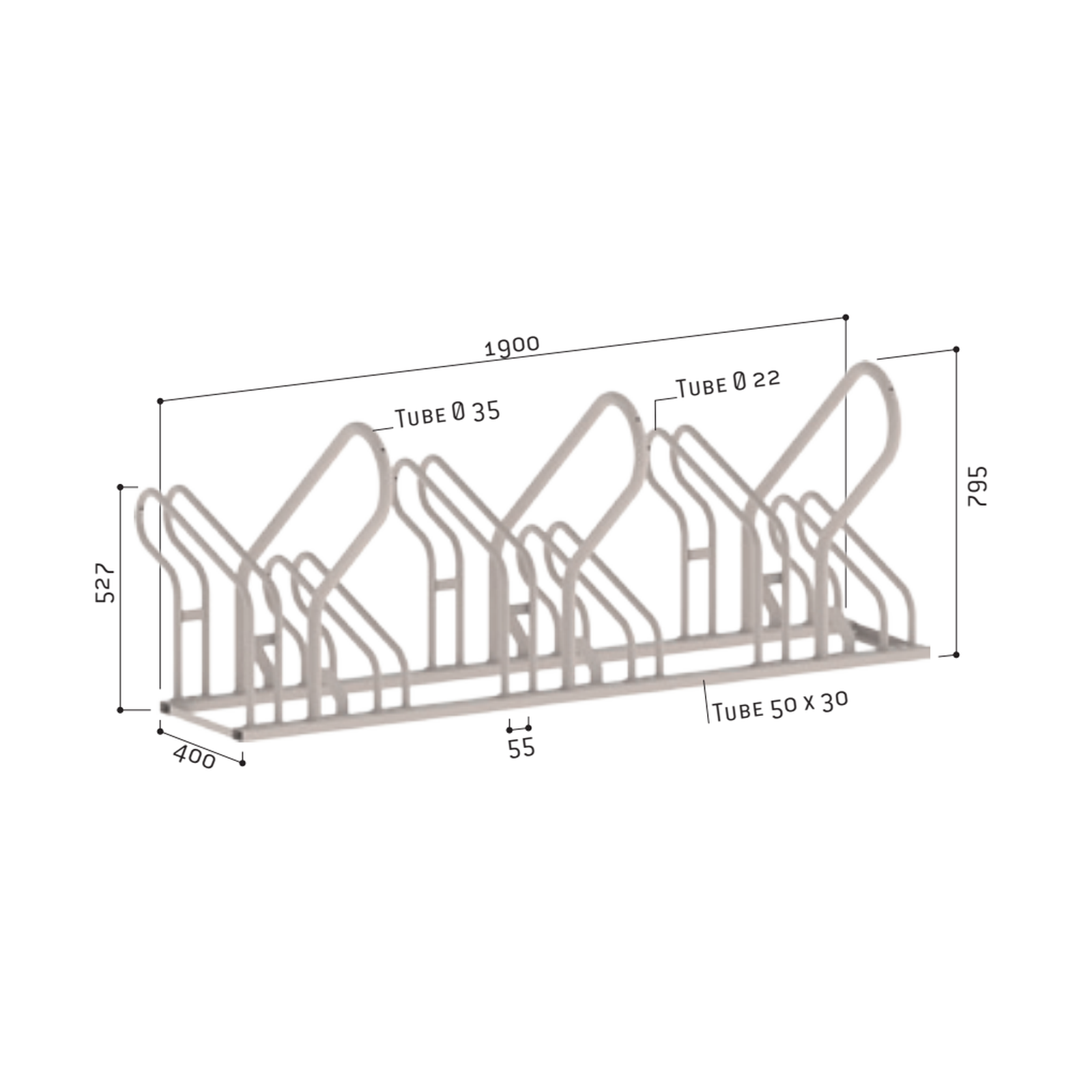Provedení z ocelových trubek 22 mm a 38 mm, šířka 1900 mm