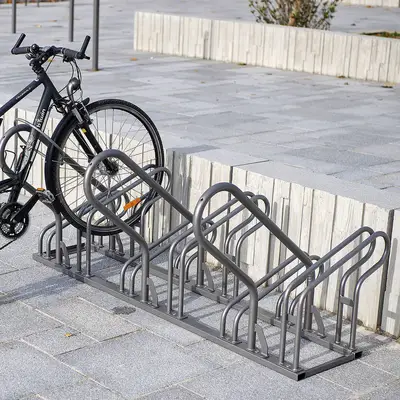 Stojan na kola pro 6 míst s různou výškou posazení kola a bezpečnostními oblouky