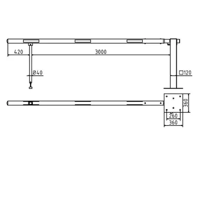 - 2 x svislý sloupek 120 x 80 mm + sklopný opěrný sloupek upevněný na rameni