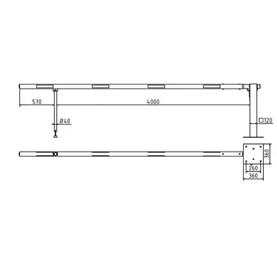 - 2 x svislý sloupek 120 x 80 mm + sklopný opěrný sloupek upevněný na rameni